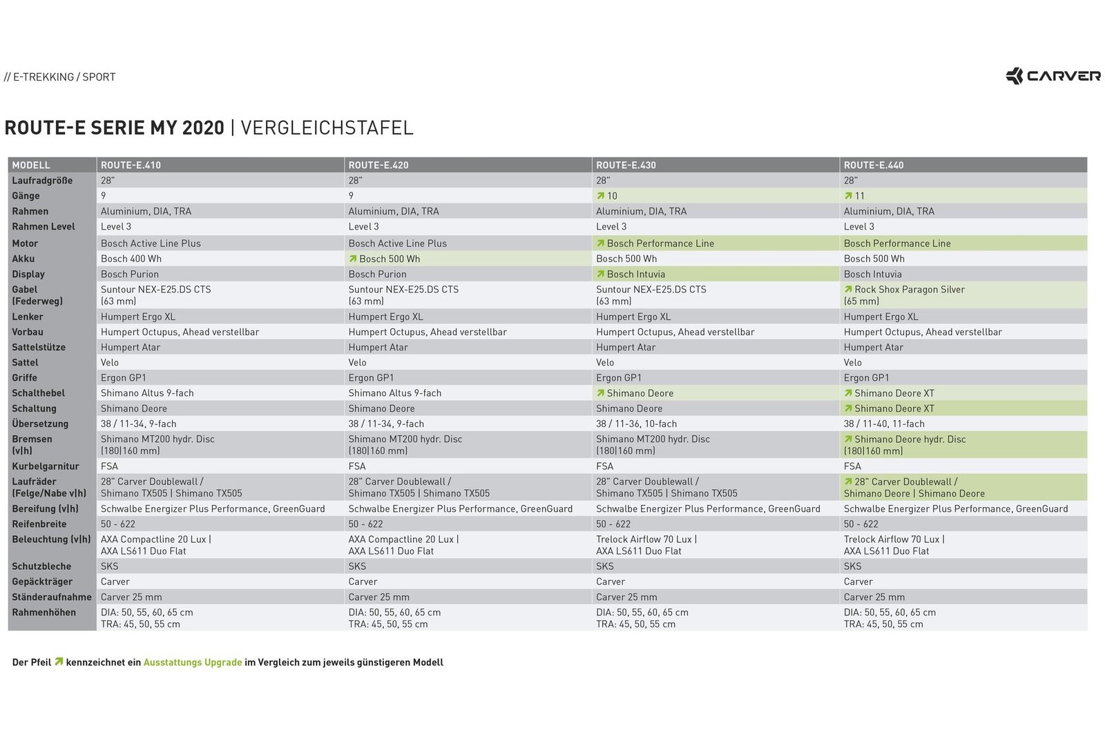 Bei Carver Route E.430 arbeiten Designer und Ingenieure Hand in Hand, weshalb die Bikes optisch wie technisch immer überzeugen. Dieser liefert 63 Nm Drehmoment, so dass die 28″ Laufräder ordentlich ins Rollen geraten. Hier kombiniert Carver einen schönen Damen Sport Rahmen aus Aluminium mit einem kräftigen Bosch Performance Line Mittelmotor. So auch das Route E.430. Für die passende Reichweite sorgt ein großer 500 Wh Intube-Akku. Alles in allem bekommt man also ein tolles E-Trekkingbike, das gerade sportive Damen begeistern dürfte.
