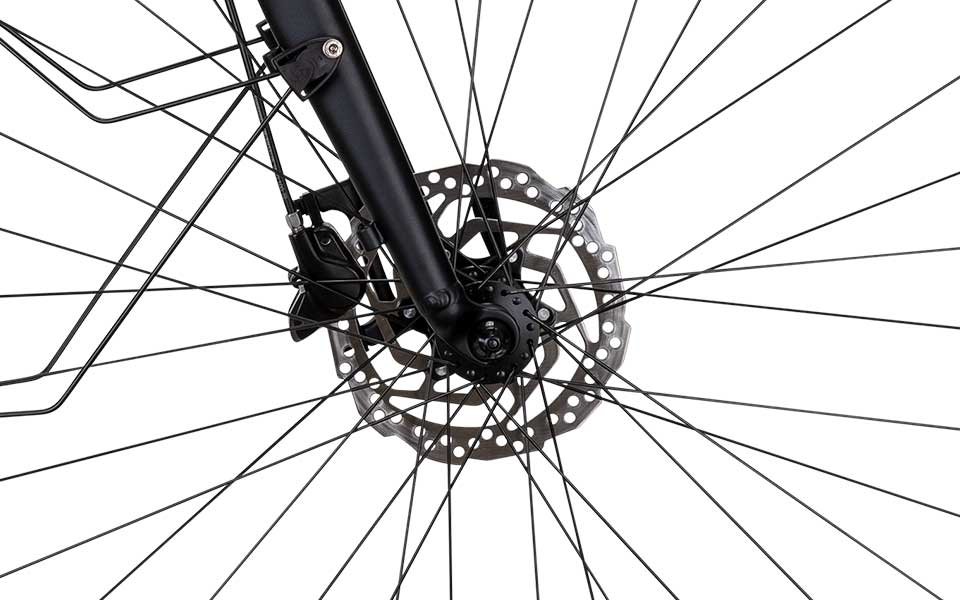 Naben: Shimano HB-TX505 / Bafang mit integriertem Motor. Speichen: 2 mm Edelstahl, schwarz |
