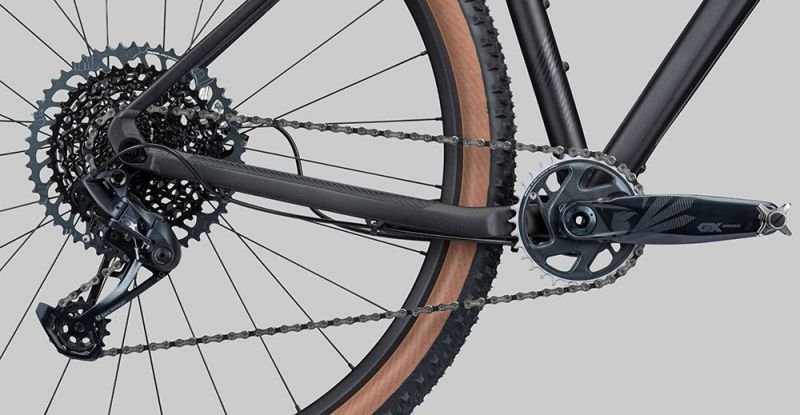 Auch ansonsten haben wir bei der Ausstattung peinlich genau darauf geachtet, Gewicht zu reduzieren, ohne natürlich an der Funktion zu sparen. So verbauen wir die komplette, leichte SRAM GX Eagle Gruppe mit ihrer 10-52 Zähne großen Kassette und damit einhergehend enormer Gangspreizung, die Dir in jedem Terrain die richtige Übersetzung zur Verfügung stellt.